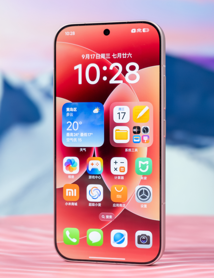 由于其他厂商的高端机还没有发布,这款小米17自然成为了9月份高端机市场的性价比第一名了。作为一款高端机,小米17的升级还是非常多的,它的正面搭载了一块6.3英寸的极窄四等边OLED直屏,黑边的宽度仅仅为1.18mm,视觉上给人非常震撼的感觉。小米龙晶玻璃的加持使得它的耐摔性能大幅提升,金属中框+雾面处理的玻璃后盖的设计,再配合IP68和IP69防水,裸机使用依旧省心。